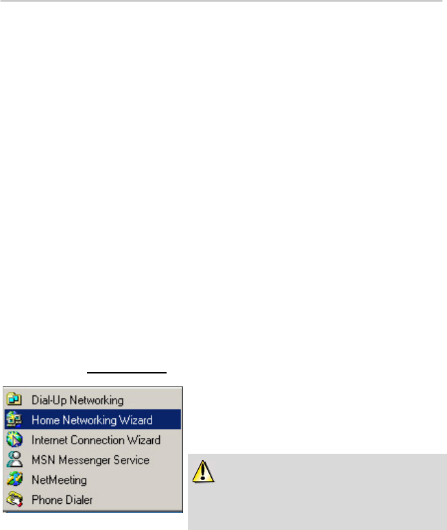 4.5.1. Windows Me: Using the Home Networking Wizard in an